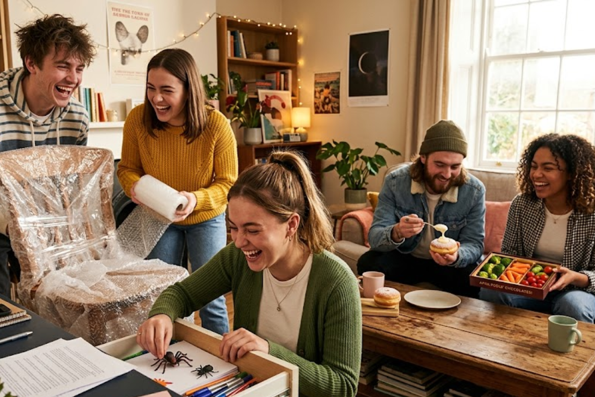 বন্ধুর চেয়ার বা টেবিল পুরো বাবল র্যাপ দিয়ে মুড়িয়ে দিতে পারেন। সে যখন বসতে যাবে বা কিছু রাখতে যাবে, তখন হঠাৎ করেই “পপ-পপ” শব্দ হবে। এই অপ্রত্যাশিত শব্দ তাকে চমকে দেবে এবং আশেপাশের সবাই হেসে ফেলবে। আরেকটি মজার কৌশল হলো ফ্রিজের ভেতরের সব জিনিসে ছোট ছোট চোখের স্টিকার লাগিয়ে দেওয়া। এতে মনে হবে যেন সব খাবারই তার দিকে তাকিয়ে আছে! ফ্রিজ খুললেই সে একটু থমকে যাবে, তারপর বুঝতে পেরে মজা পাবে।