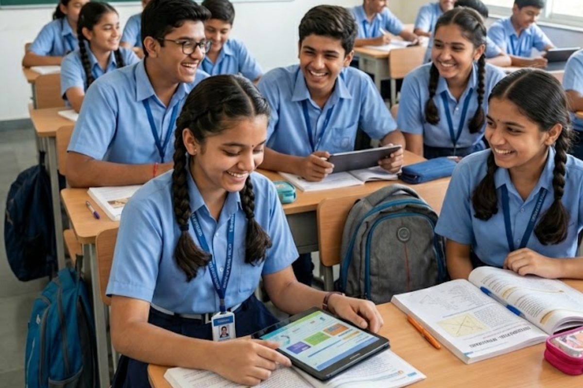 :** Indian school students feeling happy and relieved due to the new ICSE and ISC syllabus changes and reduced exam pressure.