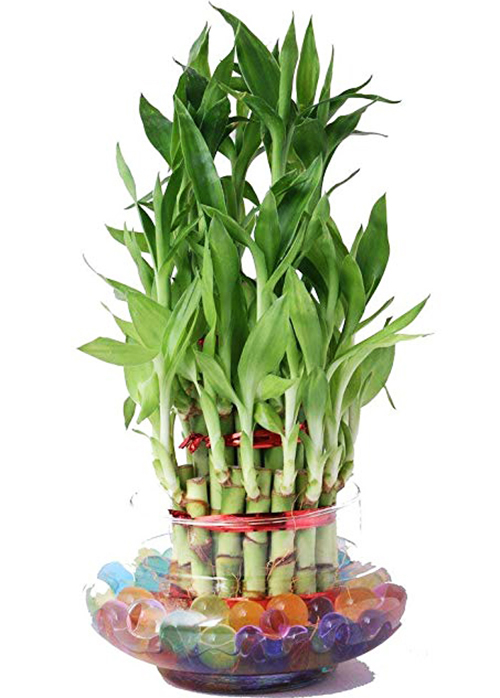 তবে এই গাছ সাজানোর একটি নির্দিষ্ট পদ্ধতি রয়েছে। এই গাছ একটি কাঁচের পাত্রে রেখে ঠিক ৩ ইঞ্চি জল নিয়ে, তাতে রঙবেরঙের পাথর সাজিয়ে রাখতে হবে। ব্যাম্বু কিনে এনে কাঁচ বা সেরামিকের পাত্রে কিছুটা জল ও কয়েকটা পাথর রেখে, তার ওপর গাছটা বসিয়ে দিন। খেয়াল রাখুন এমন জায়গায় রাখবেন যেখানে সরাসরি রোদ এসে না পড়লেও যথেষ্ট আলো-বাতাস থাকে। সপ্তাহে একবার করে জল বদলালেই চলবে। ক্লোরিন যুক্ত জলে লাকি ব্যাম্বু বাঁচে না। তাই পরিষ্কার জল দেবেন। লাকি ব্যাম্বুর গাছে তরল সার ব্যবহার করলে তা আরও ভালো ভাবে বাড়বে। মানা হয়, একটি গোছায় দুটি থাকের গাছ থাকলে তা দাম্পত্য প্রেম বাড়িয়ে তোলে। তিনটি থাকলে স্বাস্থ্য, সম্পত্তি বাড়িয়ে তোলে। চারটিতে বাড়ির কোনও সদস্যের কেরিয়ার ও পড়াশুনোর ভাগ্যে উন্নতি আসে। ফলে আপনার উদ্দেশ্য অনুযায়ী বেছে নিতে হবে। তবে প্রতিটিতেই লালা রিবন বাঁধা থাকতে হবে।