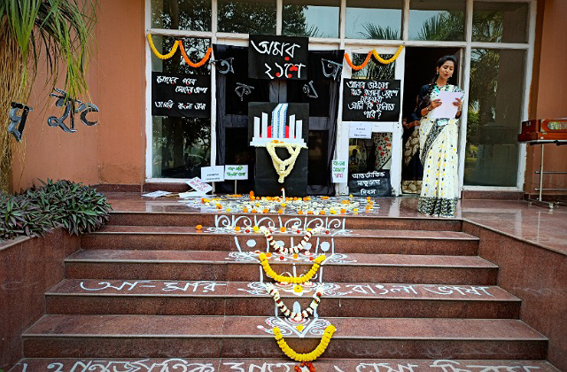 আন্তর্জাতিক মাতৃভাষা দিবসে ভাষা – শহিদদের শ্রদ্ধার সঙ্গে স্মরণ করা হলেও সেই সমস্ত মহান ভাষা ও অক্ষর কর্মীদের সম্মান জানানোর জন্য সারাজীবনই  উৎসর্গের প্রয়োজন রয়েছে। মাতৃভাষা তো আসলে মাতৃদুগ্ধ। হাজার সুস্বাদু বেবিফুডও যেমন শিশুর বেড়ে ওঠার জন্য মাতৃদুগ্ধের বিকল্প হয়ে উঠতে পারে না, তেমনি একাধিক ভাষা শেখার চেষ্টা করলেও সম্যকভাবে ভাব প্রকাশের জন্য মাতৃভাষার বিকল্প খুঁজে পাওয়া অসম্ভব। বাংলা ভাষা বাঙালির নাড়ির টান। মাতৃগর্ভে থাকার সময়েই শিশুর নাড়ির সঙ্গে মিশে যাওয়া বাংলা ভাষাকে তাই বাঙালির মনন থেকে মুছে ফেলা অসম্ভব। প্রত্যেক বাঙালির বুকের ভিতরে বাংলা সদা বিরাজমান। বিরাজমান বলেই কড়া  ইংরেজি মাধ্যমের সপ্রতিভ ছাত্রও স্কুল – ক্যাম্পাস টপকেই বাংলায় ফিরে আসতে পেরে হাঁপ ছেড়ে বাঁচে, ইংরেজি সাহিত্যের দুঁদে অধ্যাপকও লেকচার সেশন শেষ করে স্টাফরুমে ফিরতে চান বাংলায় ফিরবেন বলে, আমেরিকায় বসে নোবেল লরিয়েট বাংলায় বিবৃতি দেন ওয়ার্ল্ড মিডিয়ার সামনে। বাংলা আসলে বাঙালিদের মননে। মননে বাংলা বলেই ইংরেজি মাধ্যমের ছাত্র ভাগ্না বাংলায় ক্রিকেট কমেন্ট্রি শোনার ইচ্ছা প্রকাশ করে, ভাগ্নিরা খেলার বিষয় হিসেবে বাংলা সিরিয়ালের গল্প ভাঁজে, ভাইপো একপা দুপা হাঁটতে হাঁটতে আধো আধো বুলিতে মা আর বাবাই বলতে শেখে সবার আগে, ইংরেজি সাহিত্যের ছাত্র হয়েও আমি সৃজনশীল লেখাগুলো বাংলায় ছাড়া লেখার কথা ভাবতেই পারি না, ঠাকুমা আই সি ইউ তে যন্ত্রণায় কাতরাতে কাতরাতে বাংলাতেই চিৎকার করেন, স্বপ্ন বাংলাতেই দেখি, দুঃখ – আনন্দ বাংলাতেই বুঝি, পেটে কিল মারলে ও মা গো এর বাইরে কিছু বের হয় না মুখ দিয়ে।