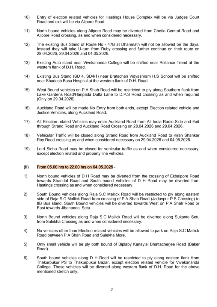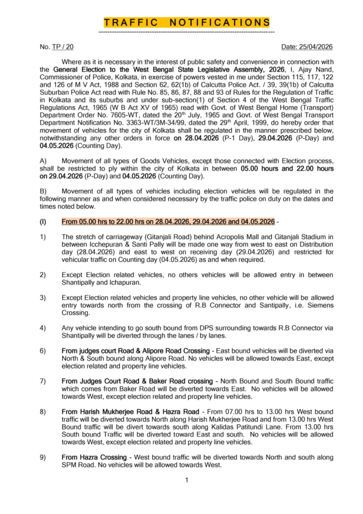 #KolkataTraffic #ElectionUpdate #TrafficAlert #KolkataPolice #RoadRestrictions #ElectionNews #TrafficAdvisory #CityUpdate #BreakingNews #IndiaElections