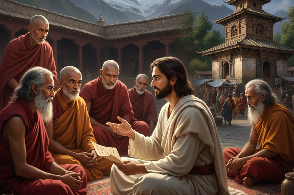 Artistic depiction of Lost Years of Jesus: Jesus spending his Lost Years in India learning from sages.