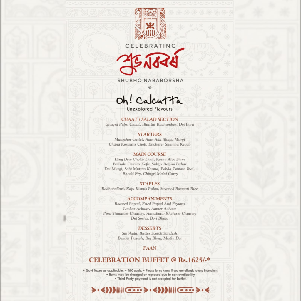 পয়লা বৈশাখের এই বিশেষ দিনে ওহ ক্যালকাটা–তেও থাকছে একেবারে ঐতিহ্যবাহী বাঙালি পদে ভরপুর বিশেষ মেনু। এখানে গেলে আপনি খাঁটি বাঙালি খাবারের স্বাদ পেয়ে যাবেন—যেমন ছোলার ডাল, কষা আলুর দম, ভেটকি ফ্রাই, চিংড়ির মালাইকারি ইত্যাদি।