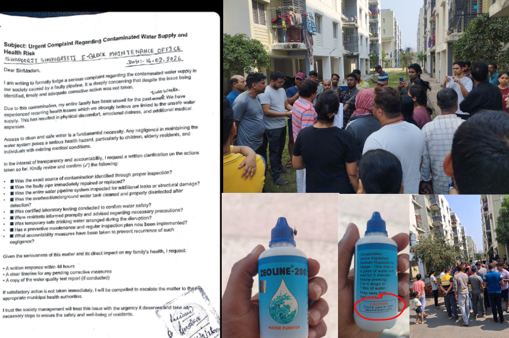contaminated water complaint Kolkata housing society crisis residential water supply problem Shapoorji Pallonji housing water issue Shapurji water crisis water contamination news
