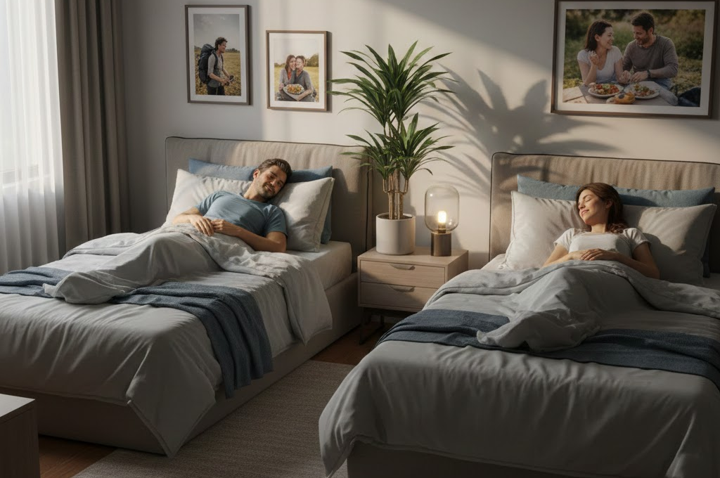 Sleeping in Separate Beds: নাক ডাকা, ঘনঘন ঘুম ভাঙা ও খারাপ স্লিপ কোয়ালিটির কারণে দাম্পত্য জীবনে বাড়তে থাকা বিরক্তি, রাগ আর দূরত্বের মাঝে ‘স্লিপ ডিভোর্স’ কি সত্যিই সম্পর্ক নষ্ট করে দেয়, নাকি আলাদা বিছানায় ঘুমিয়ে ভালো ঘুম, স্থির মেজাজ, মানসিক শান্তি ও একে অপরের প্রতি সহানুভূতি ফিরিয়ে এনে আধুনিক দম্পতিদের সম্পর্ককে আরও সুস্থ, টেকসই ও বোঝাপড়ায় ভরপুর করে তোলার একটি বাস্তব ও বিজ্ঞানসম্মত সমাধান হয়ে উঠছে?