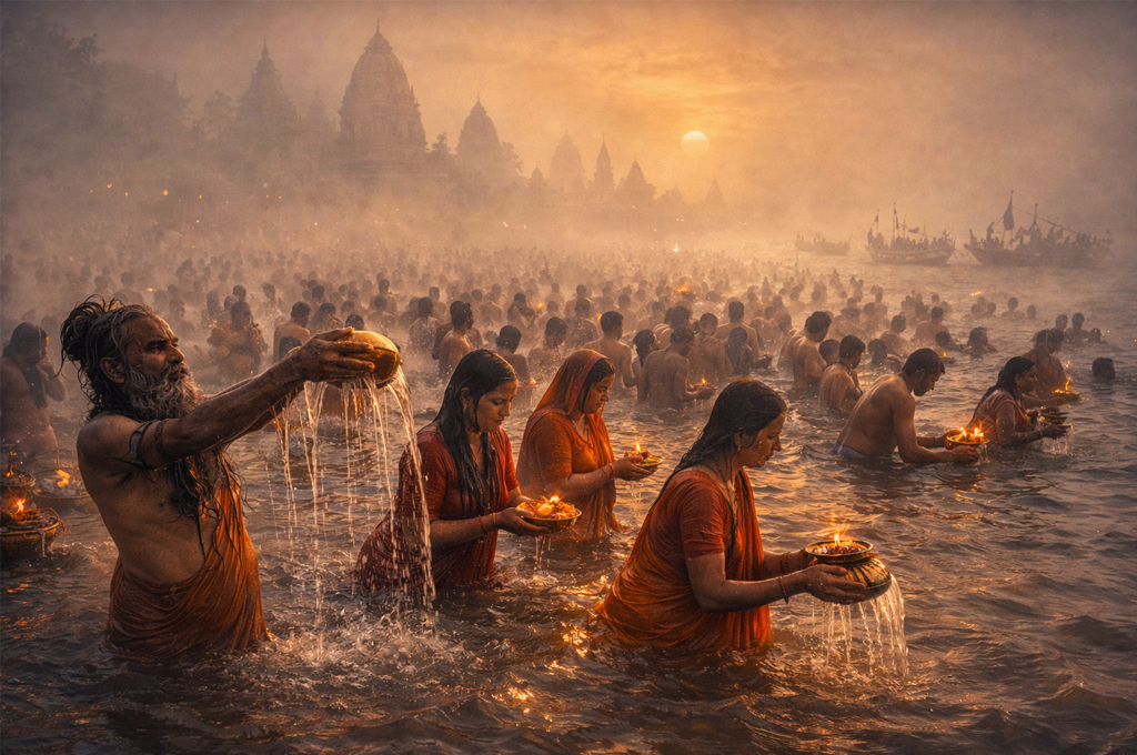 নিউজ অফবিট ডিজিটাল ডেস্ক: কুয়াশাচ্ছন্ন শীতের ভোর। হাড়কাঁপানো ঠান্ডা উপেক্ষা করে লাখো মানুষ ডুব দিচ্ছেন সাগরের জলে। মুখে একটাই ধ্বনি—”কপিল মুনি কি জয়, গঙ্গা মাইয়া কি জয়!” মকর সংক্রান্তির এই পুণ্য তিথিতে গঙ্গাসাগর মেলা কেবল একটি মেলা নয়, এটি ভারতের সনাতন সংস্কৃতির এক জীবন্ত মহাকাব্য।